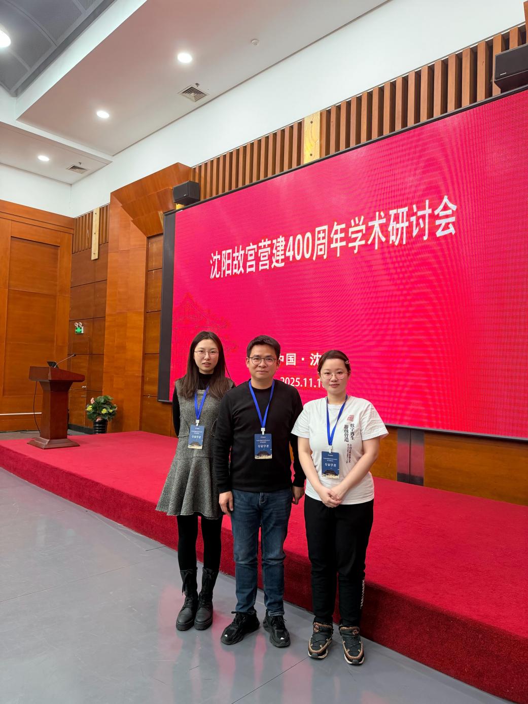 2025年11月16日,由沈阳故宫博物院主办的“沈阳故宫营建400周年学术研讨会”在辽宁大剧院宾馆举行。北京理工大学设计与艺术学院严雨主持的国家艺术基金中国园林艺术数字再生项目团队受邀参加,项目团队博士生韩淼淼和徐路参与了“古建筑与遗产保护”专题汇报讨论。沈阳市文化旅游和广播电视局岳阳副局长致欢迎辞,中国文物学会会长顾玉才、国家清史编纂委员会李治亭委员、沈阳市文史研究馆佟悦馆员、沈阳建筑大学陈伯超教授、故宫博物院杨红研究馆员、北京大学历史系徐凯教授等嘉宾出席并做报告,沈阳故宫博物院院长郑庆伟主持开幕式,沈阳故宫博物院副书记于明霞等主持研讨会,沈阳故宫博物院党委书记孟繁涛致闭幕辞。
