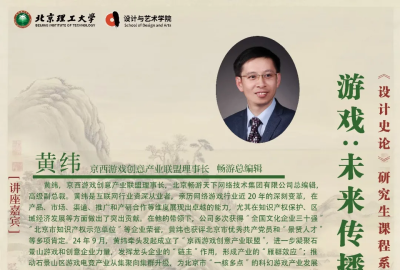 讲座预告03|设计史论课程系列讲座|京西游戏创意产业联盟理事长 黄纬:...
